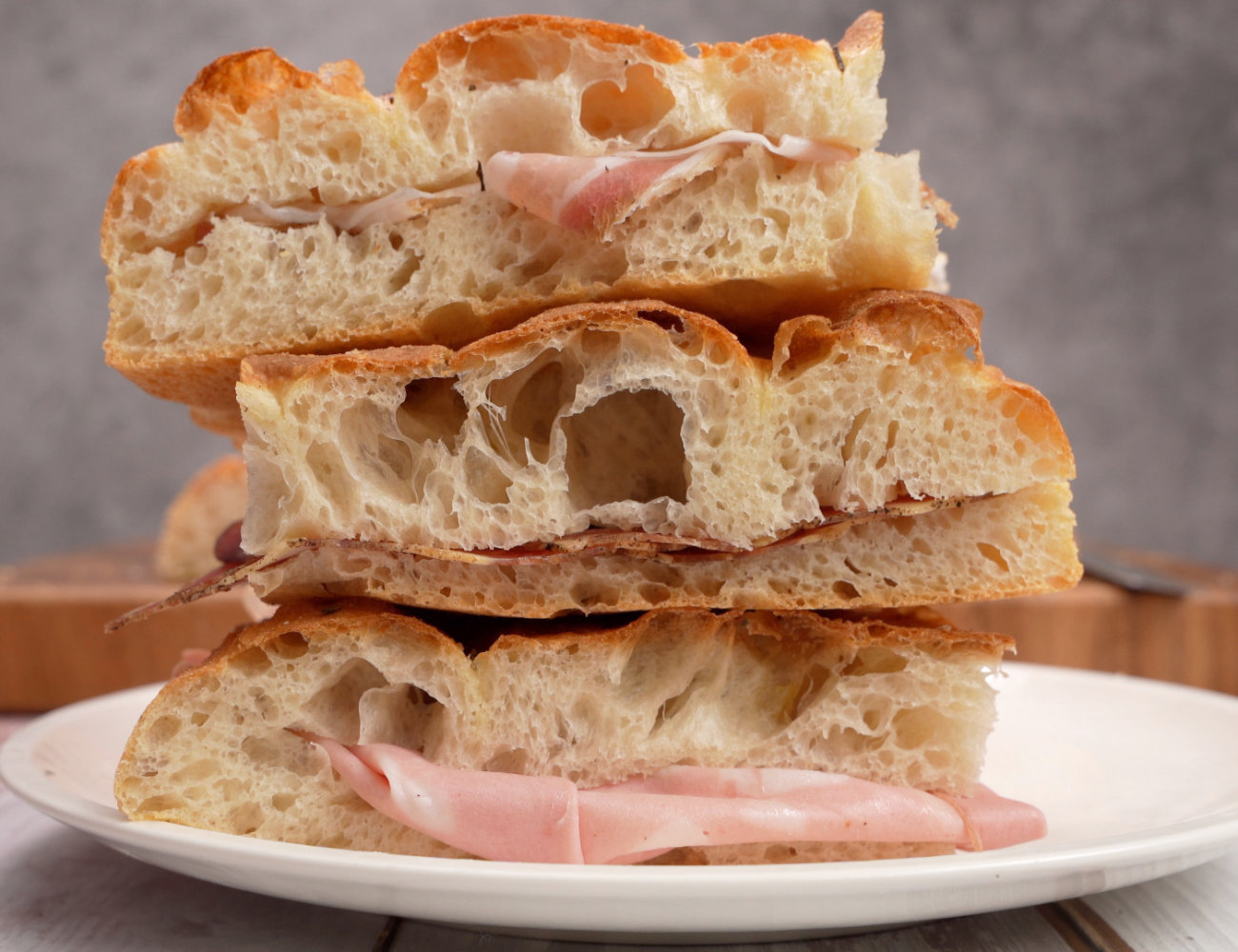 L’Italia è il paese delle 3 p: pizza, pane e pasta; ma anche delle focacce! Esistono varianti di focaccia regionali, tipiche, ed anche una moltitudine di variazioni da panettiere a panettiere. La nostra focaccia è una focaccia ideale per essere farcita. Alta, croccante fuori e soffice dentro. Una focaccia ad alta idratazione che produrrà una struttura alveolata ed un piacevolissimo gusto fresco. Non solo, ma sarà anche una focaccia che non avrà bisogno di essere impastata; ne a mano ne con impastatrice. Se hai difficoltà a lavorare un impasto ad alta idratazione, guarda questo video e ti sveleremo i trucchi ed i segreti per lavorare l’impasto come un professionista. Se non sai a cosa servono le pieghe e la pirlatura….Guarda questo video! Tutto spiegato.