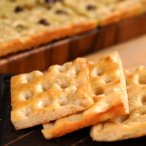 Curiosità: In Liguria, la Focaccia Genovese viene spesso consumata a colazione, dove molte persone la intingono nel loro cappuccino o latte. Quando viene gustata come antipasto, la Focaccia alla Genovese viene spesso servita con un piccolo bicchiere di vino bianco.