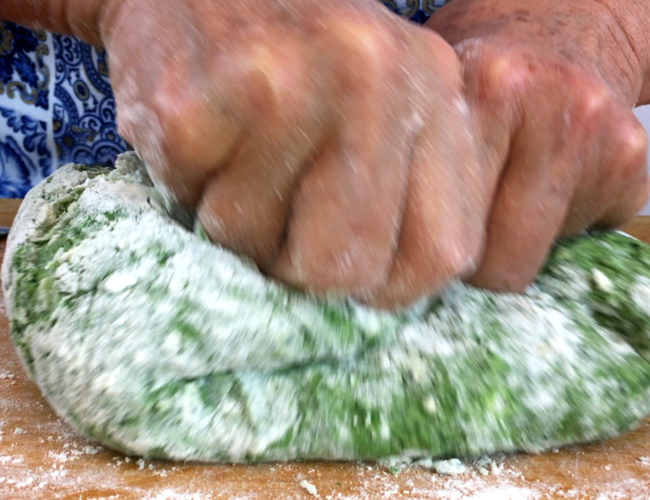 Passiamo ora all’impasto, uniremo 400 g di farina, 3 uova intere e quindi inseriremo i nostri spinaci. In effetti, l’impasto è quello tradizionale, cambieremo soltanto le proporzioni della farina per compensare l’acqua presente nella verdura.