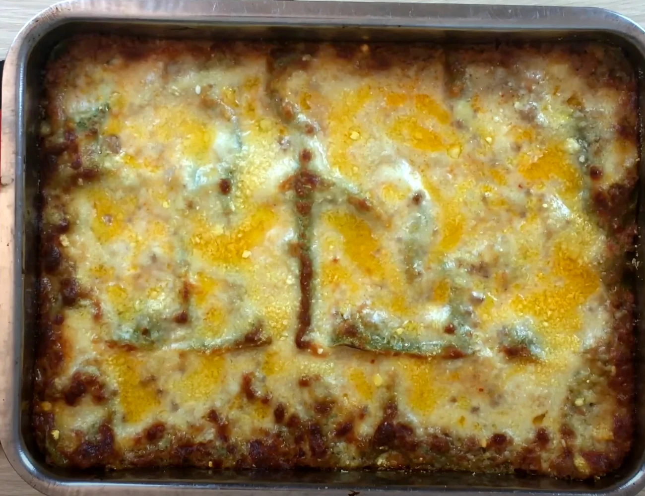 Ed ecco la lasagna quando è pronta! Perfettamente dorata e brunita. A questo punto, non ci resta che aspettare qualche minuto per farla freddare un po. Eh già, sarà duro attendere ma risulterà molto più facile tagliarla in porzioni. E buon appetito!