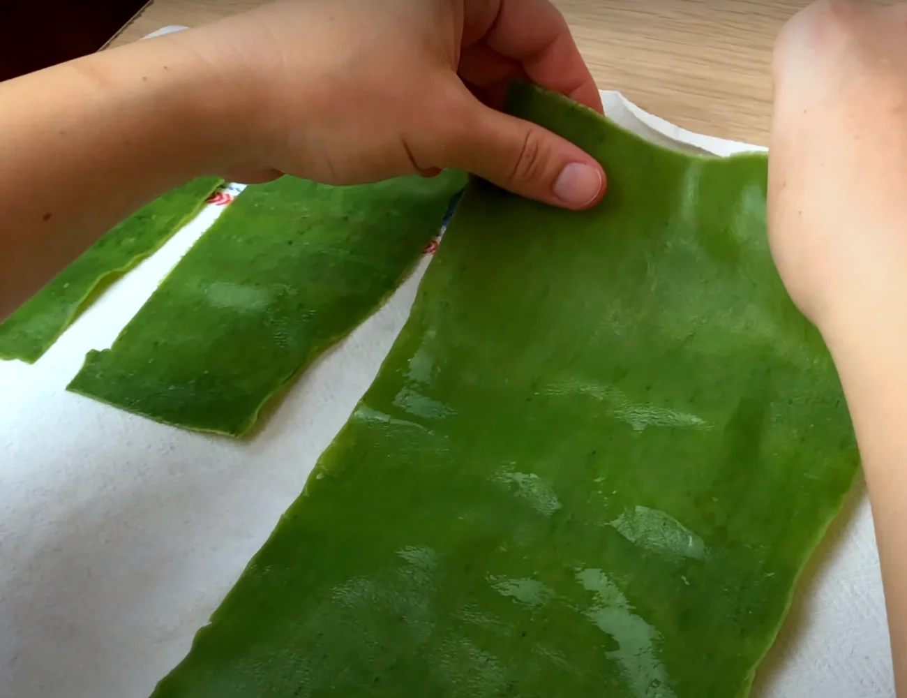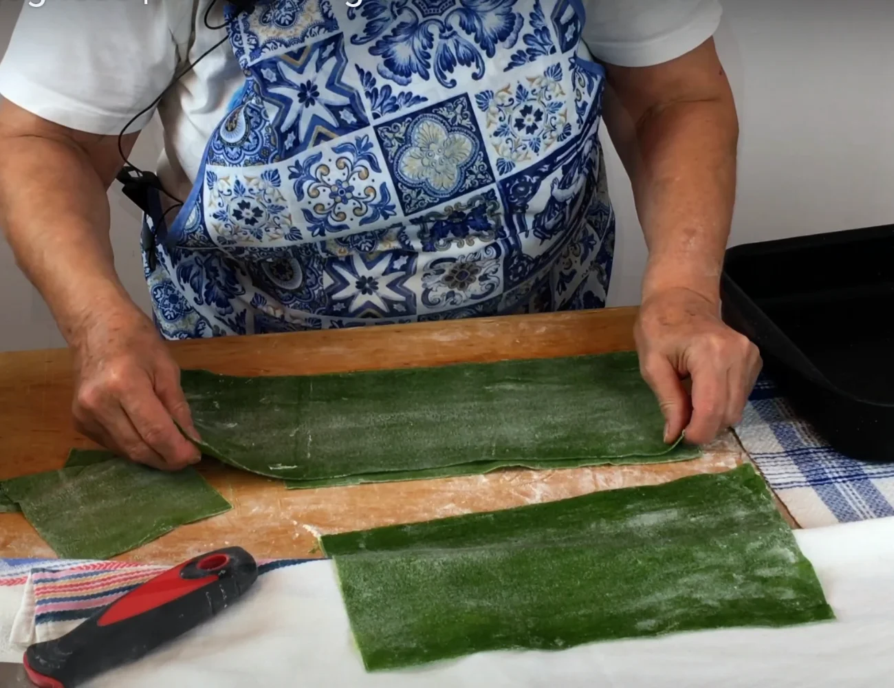 Una volta tagliate proseguiremo con la bollitura. Per evitare che si rompano, non facciamo bollire l’acqua troppo vigorosamente e ne lesseremo soltanto una per volta. Se l’impasto è eseguito bene e se si seguono queste accortezze non avremo alcun inconveniente. Lasceremo la sfoglia in ammollo per circa u minuto. Quindi verrà trasferita su di un panno dove la lasceremo freddare.