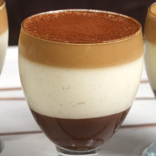 Per chi desidera una panna cotta ancora più speciale, suggeriamo una versione a tre strati, ciascuno con un gusto diverso: cioccolatovaniglia e caffè. Ogni strato aggiunge una nota unica al dessert e crea un bellissimo effetto visivo che lo rende perfetto per le occasioni speciali.
