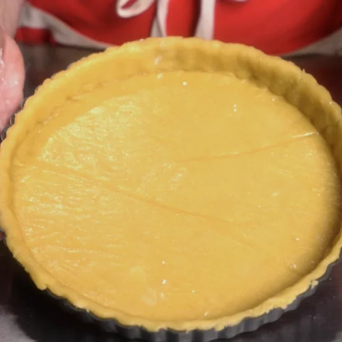 - Preparazione della Crostata: Trasferisci l'impasto steso in una teglia per crostata precedentemente unta o rivestita con carta forno. Premi delicatamente l'impasto nei bordi della teglia e rimuovi l'eccesso di pasta dai bordi.