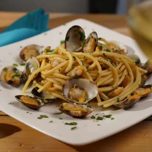 Un’amata ricetta italiana di pasta ai frutti di mare, gli Spaghetti alle Vongole sono un piatto popolare in tutta Italia. Ecco uno sguardo a un succulento piatto di Spaghetti con le Vongole preparato con questa ricetta: