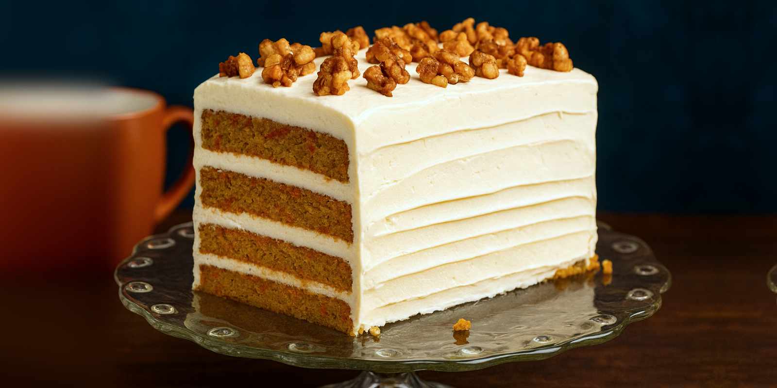 La combinazione di torta di carote speziata con una glassa di formaggio spalmabile è classica. Tuttavia, troviamo che la tradizionale glassa al formaggio cremoso—con burro e zucchero a velo—possa essere un po’ pesante.