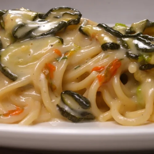 Scopri la ricetta degli Spaghetti alla Nerano Cremosissimi, un piatto classico della cucina italiana che incarna la perfetta fusione tra gusto e tradizione. Questi spaghetti vengono arricchiti da zucchine fritte tagliate a medaglioni e mescolate con una salsa cremosa di formaggi squisiti, tra cui il provolone del monaco e il parmigiano, sciolti delicatamente in un mix di burro e acqua di cottura della pasta. La salsa, arricchita con basilico fresco e, a scelta, fiori di zucca, avvolge gli spaghetti in modo sublime, creando un equilibrio di sapori che delizia il palato.
